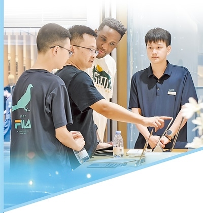 “入境游客喜歡選購耳機(jī)、AI眼鏡以及半導(dǎo)體手持制冷風(fēng)扇。今年歐洲天氣比較炎熱,有一名外國客人一次性買了兩箱半導(dǎo)體手持制冷風(fēng)扇?!卑桶厣畴娮赢a(chǎn)品生活館負(fù)責(zé)人盧華介紹,與去年相比,今年外國客商增加20%,高峰時段店里有30%的客戶是外國人。
