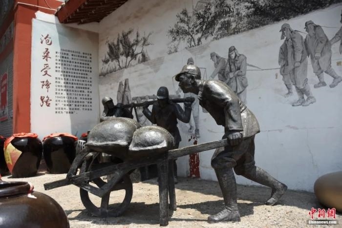 復(fù)原投降日軍整修竹木街的雕像。王宇 攝