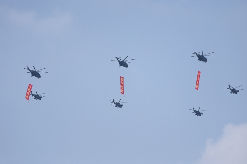 9月3日,紀(jì)念中國人民抗日戰(zhàn)爭暨世界反法西斯戰(zhàn)爭勝利80周年大會在北京隆重舉行。這是空中梯隊接受檢閱。
