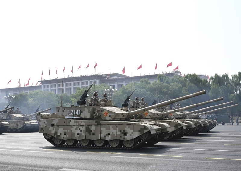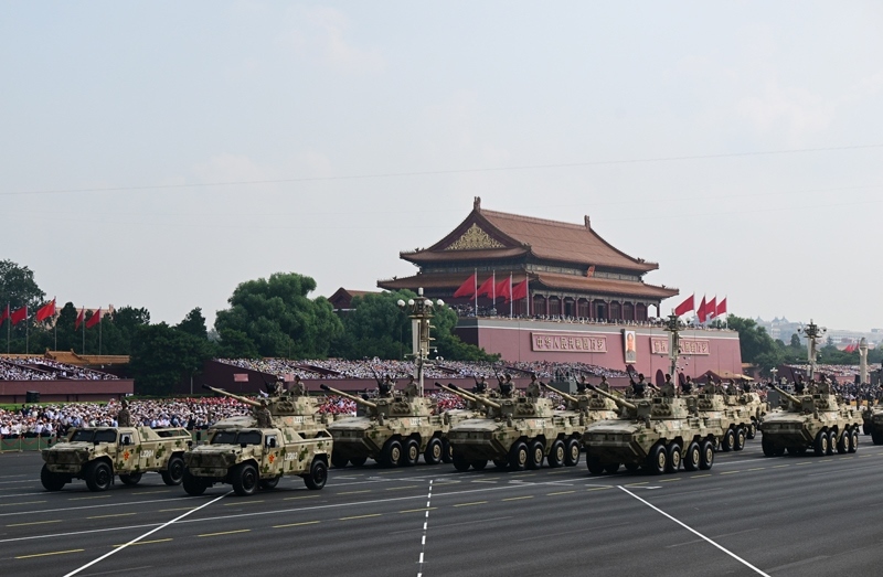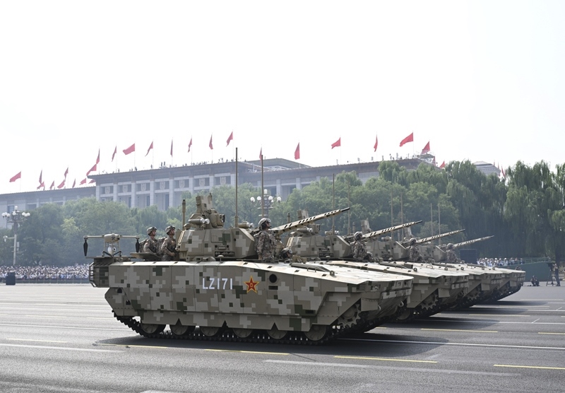 9月3日,紀(jì)念中國人民抗日戰(zhàn)爭暨世界反法西斯戰(zhàn)爭勝利80周年大會在北京隆重舉行。這是信息支援部隊方隊接受檢閱。