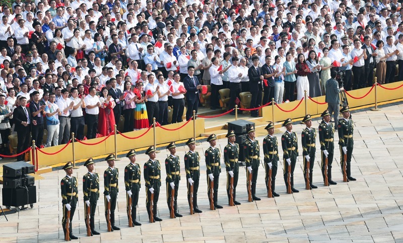 9月3日,紀(jì)念中國人民抗日戰(zhàn)爭暨世界反法西斯戰(zhàn)爭勝利80周年大會在北京隆重舉行。這是標(biāo)兵和觀禮嘉賓。
