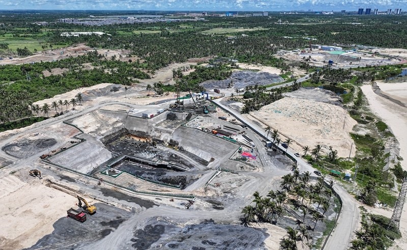 9月5日拍攝的建設(shè)中的海南商業(yè)航天發(fā)射場(chǎng)二期項(xiàng)目,遠(yuǎn)處是海南商業(yè)航天發(fā)射場(chǎng)(一期)和文昌航天發(fā)射場(chǎng)(無人機(jī)照片)。