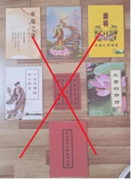 警方介紹,該案中,“一貫道”通過鼓吹“世界末日”即將來臨,對成員進(jìn)行心理恐嚇,并向新成員發(fā)放《點(diǎn)亮智慧的心燈》等洗腦材料,大肆宣揚(yáng)“三期末劫”“末世論”等邪說,謊稱“求道”能使人“逢兇化吉、開啟智慧、身心安寧、祛病消災(zāi)”等,以此進(jìn)行誘導(dǎo)。更有甚者,該組織強(qiáng)迫成員在加入之初便立下“十條大愿”,承諾永不脫離組織,還以“脫離即遭天譴厄運(yùn)”相要挾。