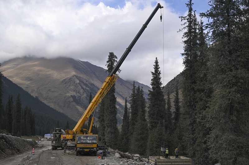 國(guó)慶中秋假期,在新疆昭溫(昭蘇至溫宿)公路施工現(xiàn)場(chǎng),中交路建的近2000名項(xiàng)目管理人員和作業(yè)工人,克服高寒、高海拔等惡劣環(huán)境,奮戰(zhàn)在西天山深處,按計(jì)劃有序推進(jìn)各項(xiàng)建設(shè)。
