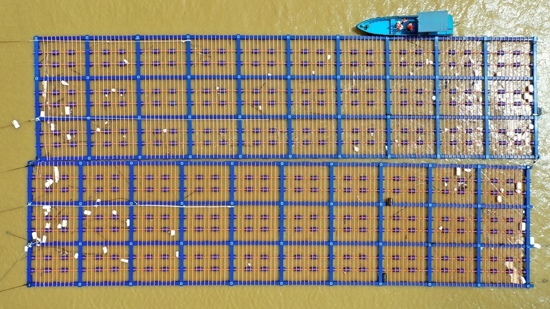 10月7日,當(dāng)?shù)厝罕娫跈z查蠔排是否受損(無人機(jī)照片)。