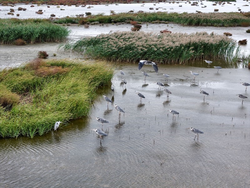 10月18日,一群候鳥在江蘇省連云港市海州灣國家級海洋公園濕地棲息、覓食(無人機(jī)照片)。
