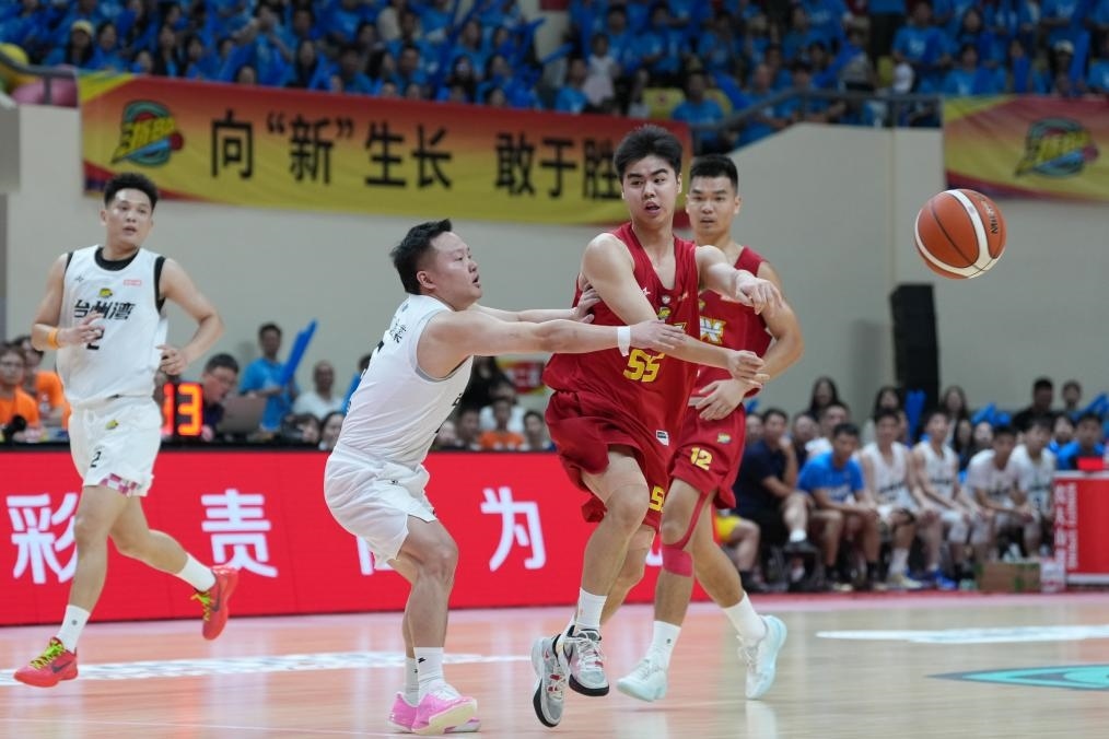 圖為9月10日“浙BA”臺(tái)州灣新區(qū)隊(duì)對(duì)陣嘉興隊(duì)的比賽現(xiàn)場。新華社記者 黃宗治 攝