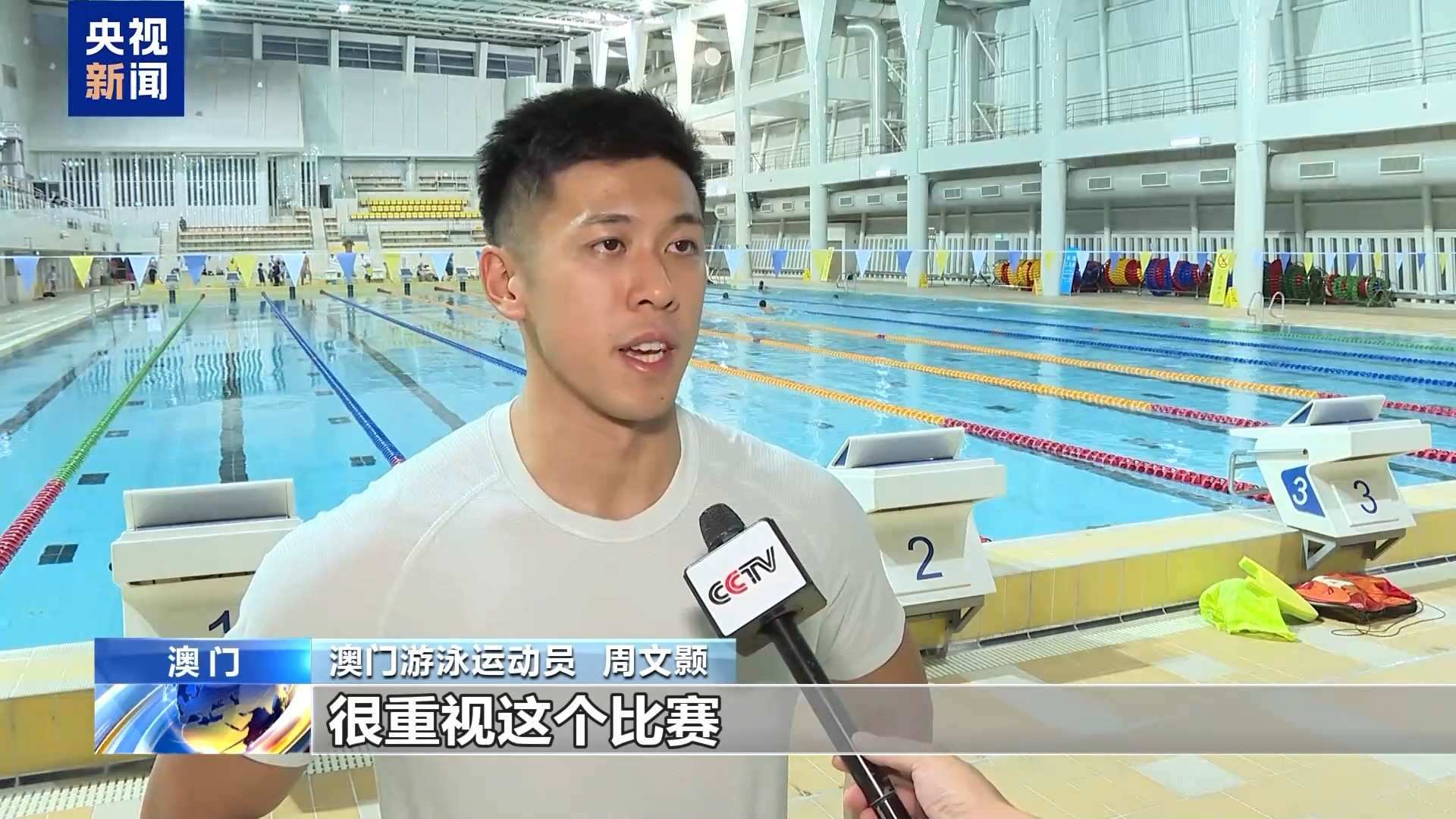 澳門游泳運(yùn)動員 周文顥:我把全運(yùn)會當(dāng)作是今年最重要的比賽,很重視這個比賽,然后比賽水平也很高。