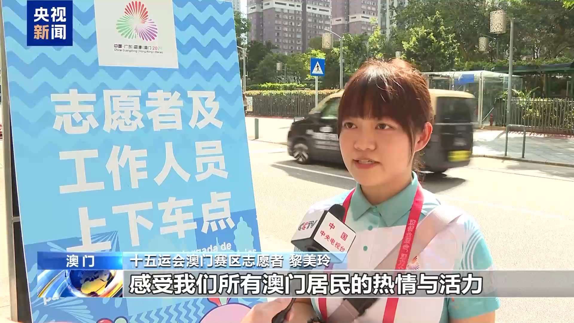 十五運(yùn)會澳門賽區(qū)志愿者 黎美玲:我本身是一名小學(xué)老師,這次很開心以志愿者的身份參與在家門口舉辦的全運(yùn)會賽事的服務(wù)工作。我們已經(jīng)都準(zhǔn)備好了,歡迎各地的朋友來到澳門,感受激情全運(yùn)會和活力大灣區(qū),感受我們所有澳門居民的熱情與活力。