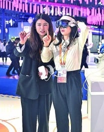 觀眾在第八屆進(jìn)博會醫(yī)療器械及醫(yī)藥保健展區(qū)體驗(yàn)智能眼鏡。新華社發(fā)