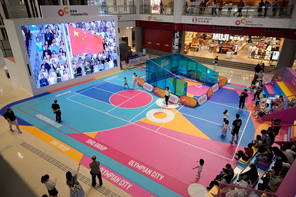 11月9日,第十五屆全國(guó)運(yùn)動(dòng)會(huì)開幕式在廣東奧林匹克體育中心舉行,這是香港市民在一家商場(chǎng)內(nèi)觀看直播。新華社發(fā)(盧炳輝 攝)