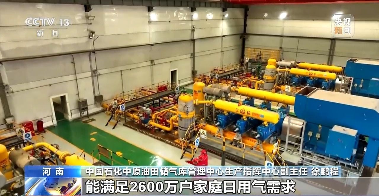 中國石化中原油田儲氣庫管理中心生產(chǎn)指揮中心副主任 徐鵬程:入冬前,中原油田儲氣庫群完成注氣儲備9.4億立方米,較去年多儲備1.2億立方米,達到歷史最高水平。在用氣高峰期,能滿足2600萬戶家庭的日用氣需求。