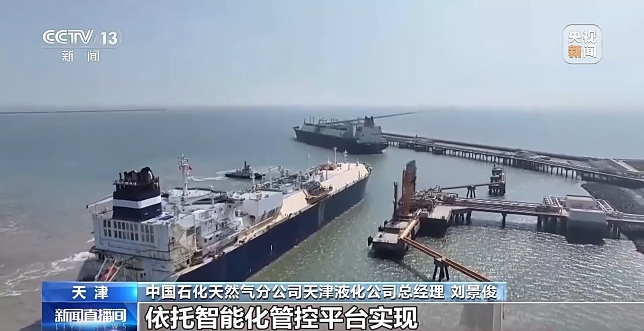 中國石化天然氣分公司天津液化公司總經(jīng)理 劉景俊:依托智能化管控平臺,實現(xiàn)從船舶接卸到管網(wǎng)外輸?shù)娜湕l精細化管理,日均外輸氣量在1000萬立方米左右,高峰期外輸能力可以達到5800萬立方米。