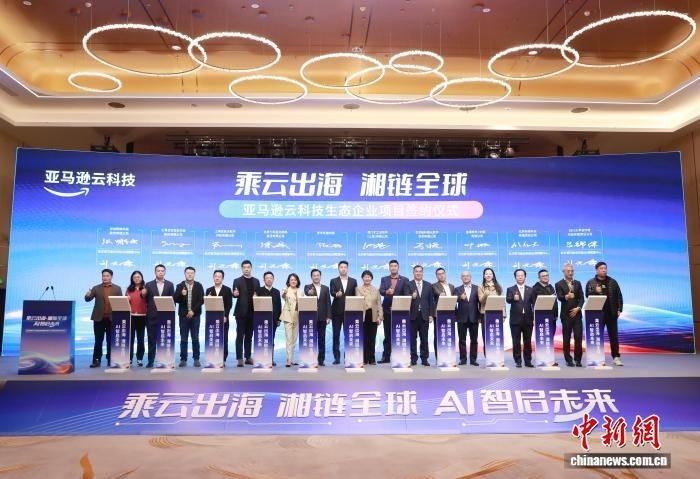 中新網長沙11月19日電 (記者 唐小晴)長沙亞馬遜云科技出海賦能中心“乘云出海 湘鏈全球 AI智啟未來”項目簽約暨跨境出海峰會18日在長沙經開區(qū)舉行。
