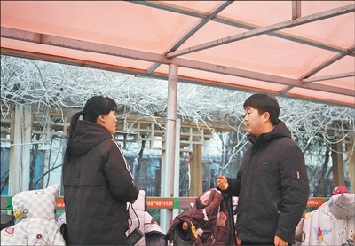 1月5日,河北省曲陽縣永寧社區(qū)永寧花園小區(qū)內(nèi),社區(qū)干部(右)向居民了解車棚使用情況。受訪者供圖