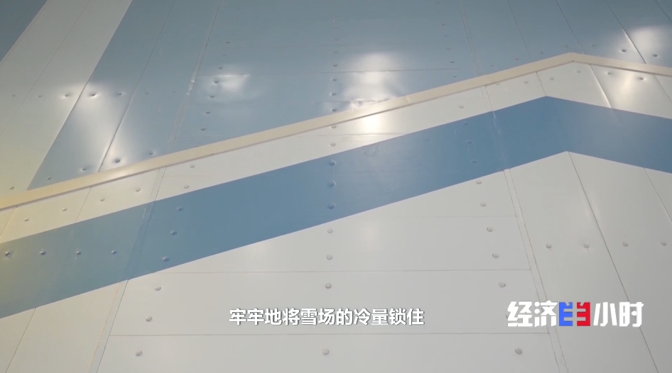 工作人員介紹,雪場四周和樓頂分布著1萬多塊冷庫板,牢牢將雪場冷量鎖住,隔絕內(nèi)外之間溫差。