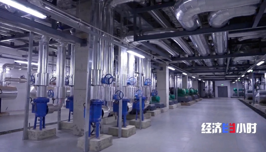 滑雪場工程師帶記者來到滑雪場地下,如同蜘蛛網(wǎng)般的設(shè)備管道映入眼簾,這里便是整個(gè)雪場的核心機(jī)房。