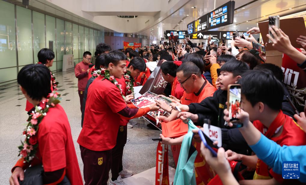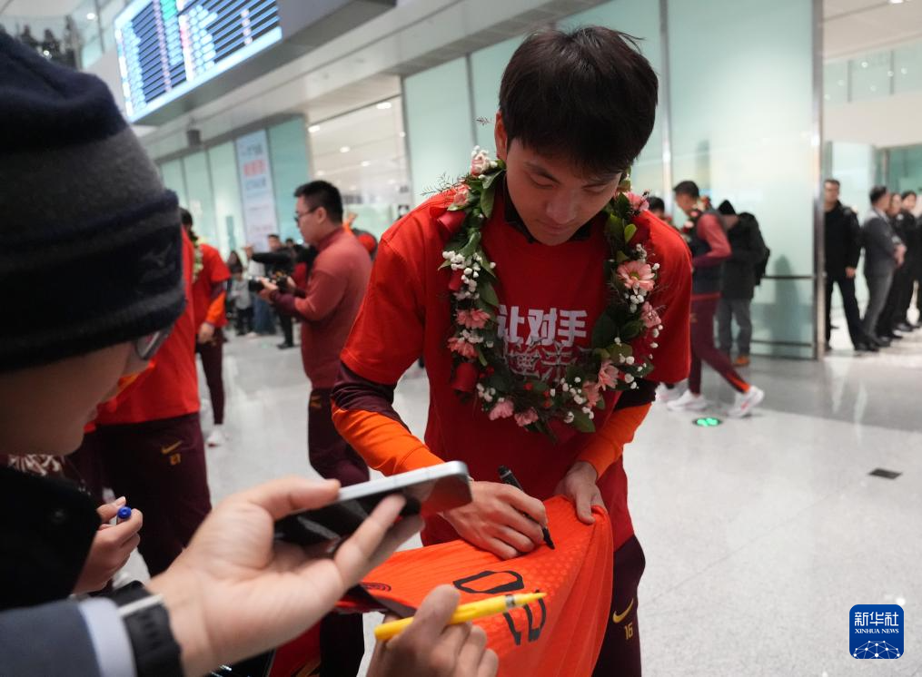 1月26日,大批球迷在機(jī)場(chǎng)歡迎中國(guó)隊(duì)歸來(lái)。