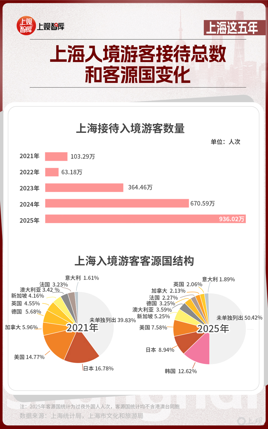 開放的上海,在全球的魅力日益提升。乘著免簽政策東風,上海在入境游賽道走出強勁上升曲線,“中國入境游第一站”吸引力持續(xù)攀升。去年全年,上海接待入境游客總量936.02萬人次,創(chuàng)下歷史新高,成為全球游客感知中國文化、體驗都市魅力的首選目的地。