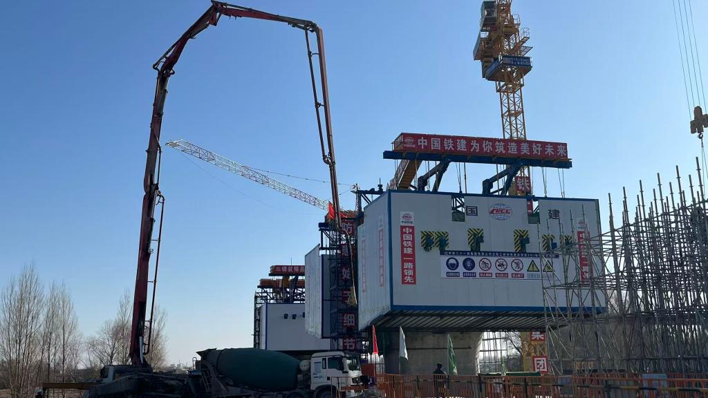 在中鐵二十一局集團有限公司所建項目處,機器轟鳴與焊花飛濺交織,鋼鐵巨臂緩緩運轉,巨大的橋墩向遠方延展開來。