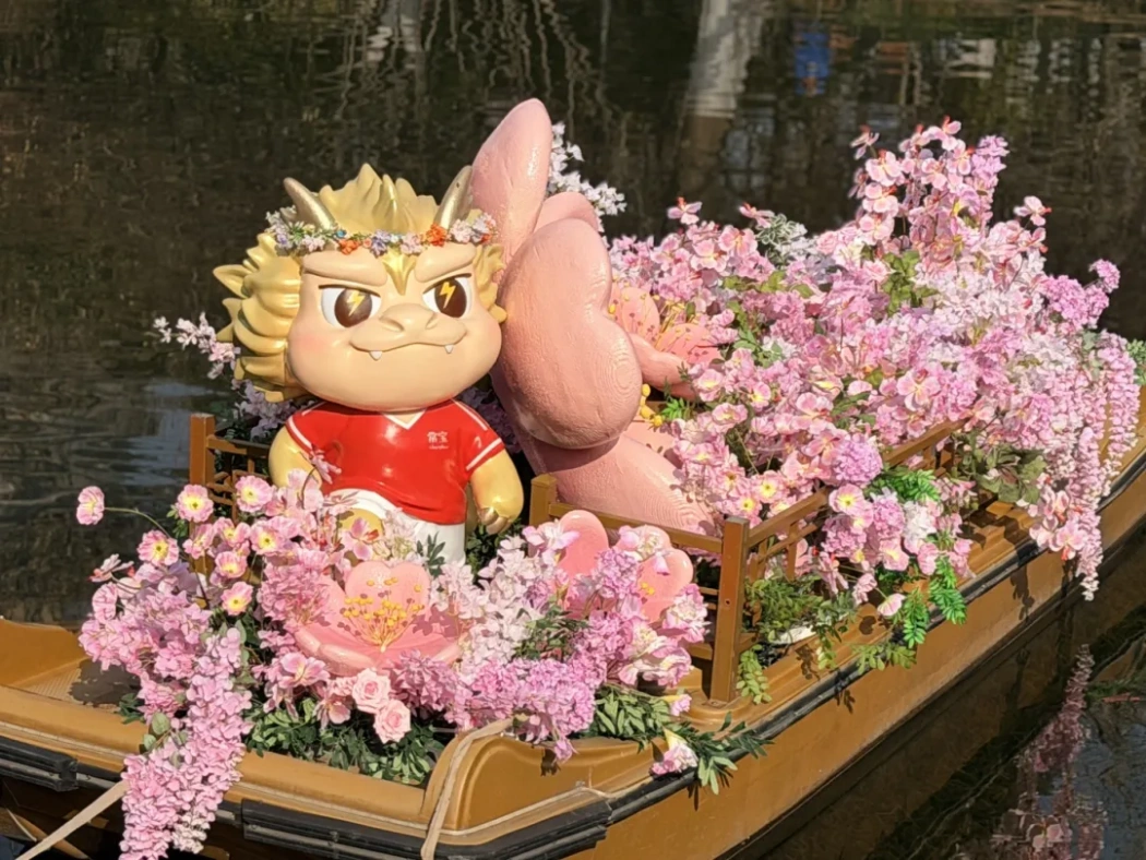 在江南水鄉(xiāng),早春的序曲總是由梅花奏響。江蘇常州便是這抹春色里最具代表性的剪影。龍城正月,古運(yùn)河畔紅燈籠高掛,紅梅公園內(nèi),唐代紅梅閣翹角飛檐,閣前紅梅燦若云霞,恰如趙翼詩中所繪的盛景。這里的賞梅,早已不是單純的游園,而是一場(chǎng)雅俗共賞的年俗盛會(huì)。文旅IP“常寶"穿梭送福,打卡點(diǎn)紅燈籠高懸,大年初一的市集上,手作、梅花好物琳瑯滿目,糖畫、梅花酥香氣四溢,文筆塔的花瀑氛圍拉滿,市民在梅香與煙火氣中收獲新春幸福。