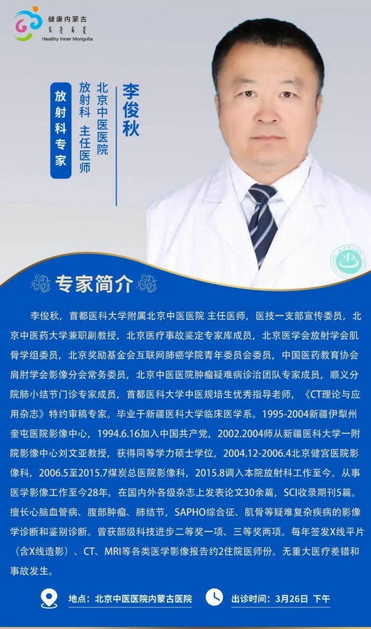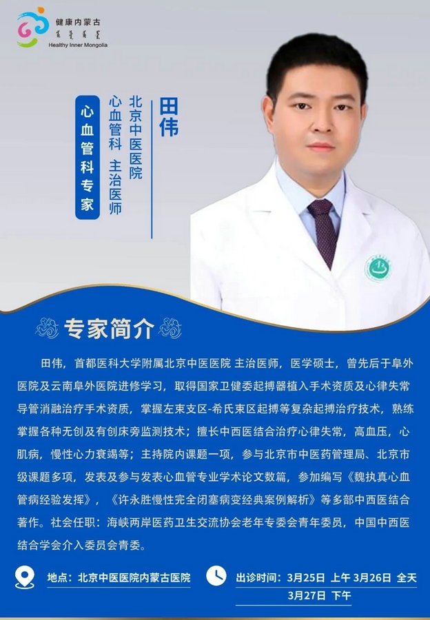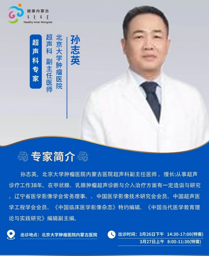 京蒙協(xié)作 政協(xié)助力。每周有北京相關(guān)協(xié)作醫(yī)院專家來呼和浩特出診,現(xiàn)將本周專家出診信息予以發(fā)布。