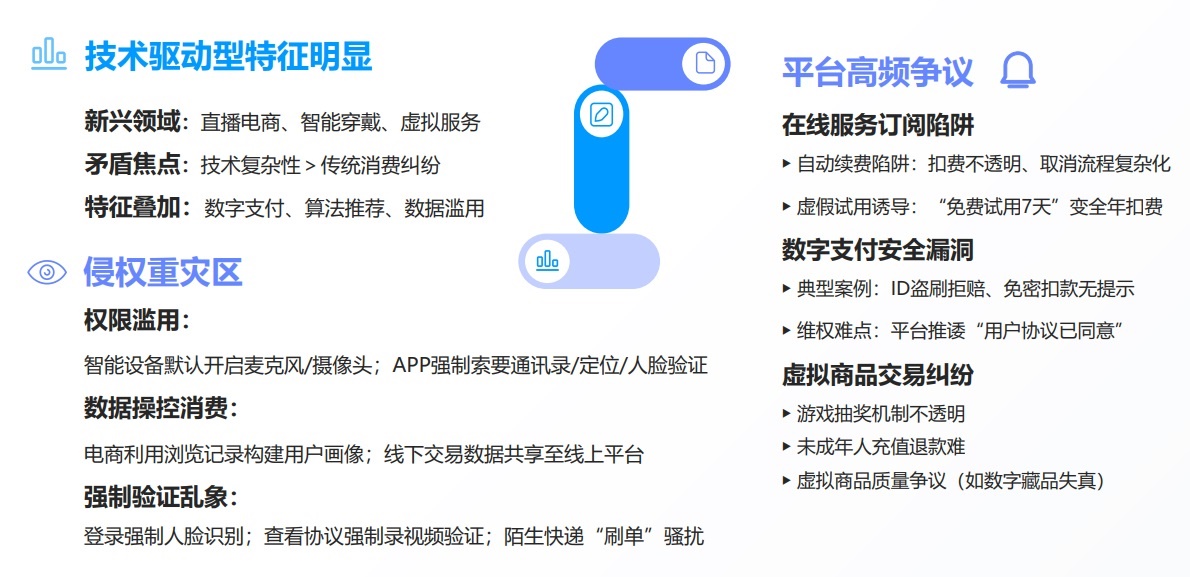 與此同時,隨著直播電商、智能穿戴、虛擬服務(wù)等數(shù)字化消費(fèi)的爆發(fā)式增長,相關(guān)爭議也呈現(xiàn)上升趨勢。
