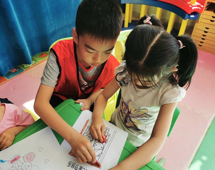學(xué)員和家長與康復(fù)中心的孩子們一起描繪“兒童節(jié)”