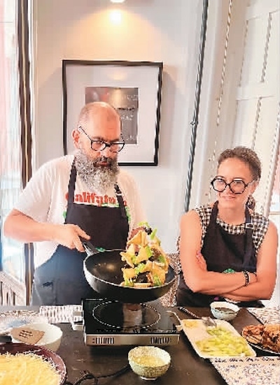 米蓋爾選修的是中華廚藝課,不僅自己學(xué)習(xí),還把太太拉來一起學(xué)做中國菜?!笆フQ晚宴全家聚會時(shí),我們做了幾道中國菜,把全家人驚艷到了。”米蓋爾說。