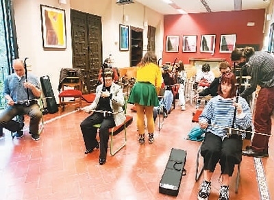 | 西班牙格大孔院學(xué)員正在上中國民樂課。 |
