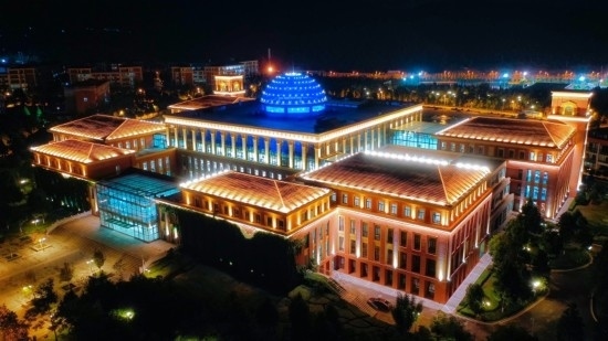 夜晚燈光亮起,閃耀的穹頂輪廓映在黑暗中,最上方的星空熠熠生輝,在館藏約為227萬冊(cè)圖書館仰止樓,遨游書海思緒翩飛,如游宇宙繁星,廣闊無垠。