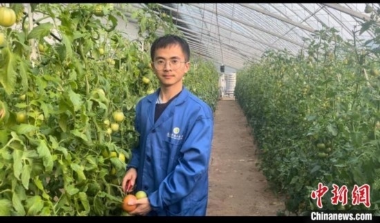 大多數(shù)時間,這位穿著黑色羽絨服的“95后”博士會與師弟李浩杰待在滿眼綠色的大棚內(nèi),觀察枝頭上的番茄,偶爾也會摘下來嘗嘗果實(shí)是否可口。