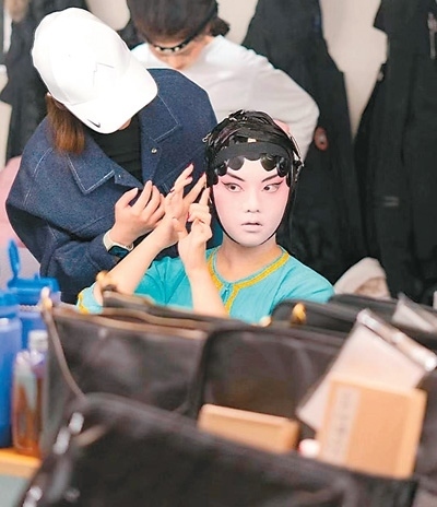 史欣玉對于演出扮相有嚴(yán)格的要求,她說:“我想盡可能地將戲曲完美呈現(xiàn)在觀眾眼前,讓大家一看就知道,我們的演出是專業(yè)的,因此妝造、舞臺效果都不能馬虎。我們每個(gè)人身兼數(shù)職,既要表演,也要學(xué)習(xí)妝造,互相幫忙完成扮相?!?/p>