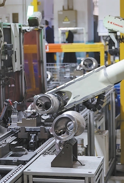 江蘇無錫職業(yè)技術(shù)學院教師團隊為蠡湖增壓技術(shù)公司研發(fā)的殼體機器人自動化去毛刺工作站正在作業(yè)。無錫職業(yè)技術(shù)學院黨委宣傳部供圖