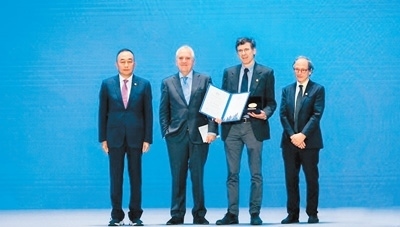 克萊因伯格(右二)被授予2024世界頂尖科學(xué)家協(xié)會(huì)獎(jiǎng)“智能科學(xué)或數(shù)學(xué)獎(jiǎng)”。圖為領(lǐng)獎(jiǎng)現(xiàn)場(chǎng)。(資料圖)