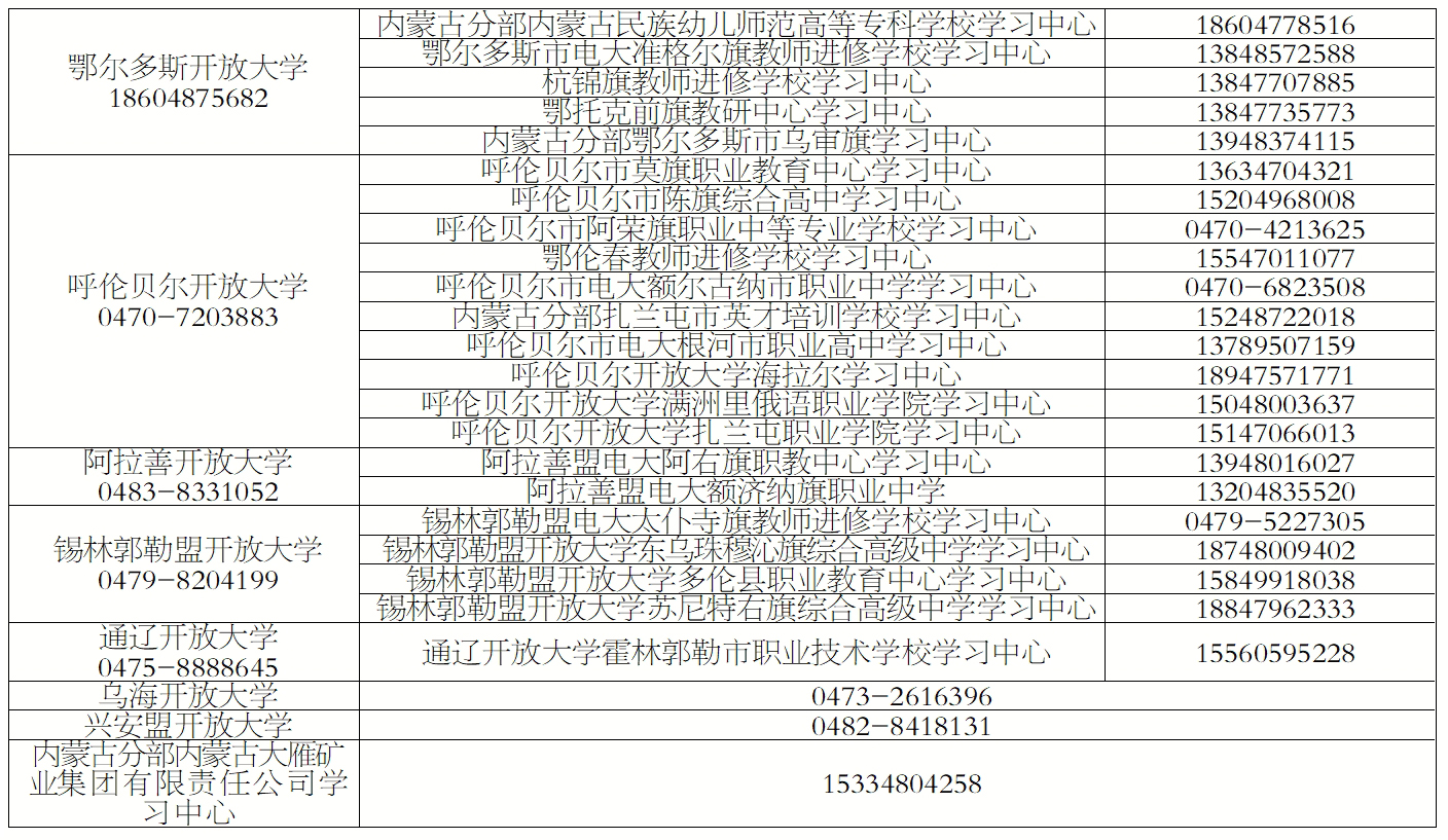 二、內(nèi)蒙古開放大學(xué)提醒社會(huì)公眾和廣大學(xué)生,我校嚴(yán)格按照國家開放大學(xué)批復(fù)的學(xué)習(xí)中心開展辦學(xué)行為,從未在內(nèi)蒙古地區(qū)授權(quán)代理機(jī)構(gòu)或委托個(gè)人以“國家開放大學(xué)”或“內(nèi)蒙古開放大學(xué)”名義代理招生。任何自稱與“內(nèi)蒙古開放大學(xué)”合作招生,宣稱“不用學(xué)習(xí)”、“不用考試”、“免試免考拿證”、“包學(xué)包過”、“報(bào)名=畢業(yè)”等虛假宣傳以及亂收費(fèi)行為,均為違法行為。我校享有“內(nèi)蒙古開放大學(xué)”名稱的專屬使用權(quán),任何單位和個(gè)人未經(jīng)我校允許均無權(quán)以我校名義開展對(duì)外宣傳。若查實(shí)相關(guān)機(jī)構(gòu)或個(gè)人存在侵權(quán)行為,我校將保留一切訴之法律途徑解決的權(quán)利,由此造成的后果全部由侵權(quán)行為人承擔(dān)。