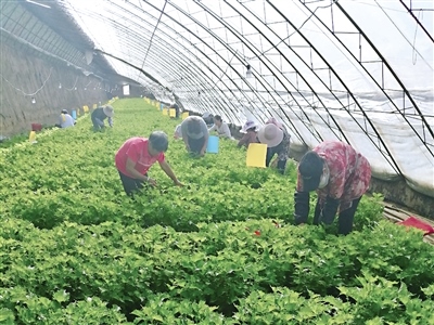 夫妻倆沒有被困難嚇倒,第二年,他們專門從日本聘請紫蘇種植專家組成團隊來到呼和浩特賽罕區(qū)七圪臺村現(xiàn)場指導,在專家的幫助下,重新改造了大棚,并及時關(guān)注天氣預警,遇到大風霜凍天氣,就提前到大棚進行檢查,避免大棚留縫;同時,在育苗、輪作、打冷、保鮮等各個流程也有了很大進步,“由于是新鮮蔬菜,保鮮最為關(guān)鍵,采摘完的紫蘇葉必須在4個小時內(nèi)放到冷庫里,我們有4個冷庫,冷庫的溫度是3~8攝氏度,4個小時之內(nèi)打冷到位,后期的保質(zhì)期自然就長了?!卑赫f,不僅如此,每年還要不定期委托江蘇海關(guān)技術(shù)中心進行319項檢測,包括常規(guī)農(nóng)殘和重金屬檢測等。技術(shù)過關(guān)了,種植方面就不用發(fā)愁了,為了讓土壤更肥沃,他們按照科學比例在地里撒上生物菌肥,再加入蚯蚓糞和發(fā)酵好的牛糞,這一年,紫蘇喜獲豐收,品質(zhì)達到了很高的標準,平均每畝地產(chǎn)200萬片葉子,產(chǎn)值達12萬元,可實現(xiàn)1/4的純利潤。效益好了,來參觀、觀摩、洽談合作的人也越來越多,但讓包迎春更高興的是,通過發(fā)展紫蘇基地,帶動了周邊上百戶農(nóng)民就近就業(yè)。