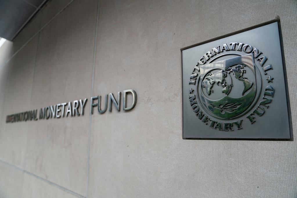 這是2021年4月12日在美國(guó)華盛頓的國(guó)際貨幣基金組織總部拍攝的標(biāo)志。新華社記者劉杰攝