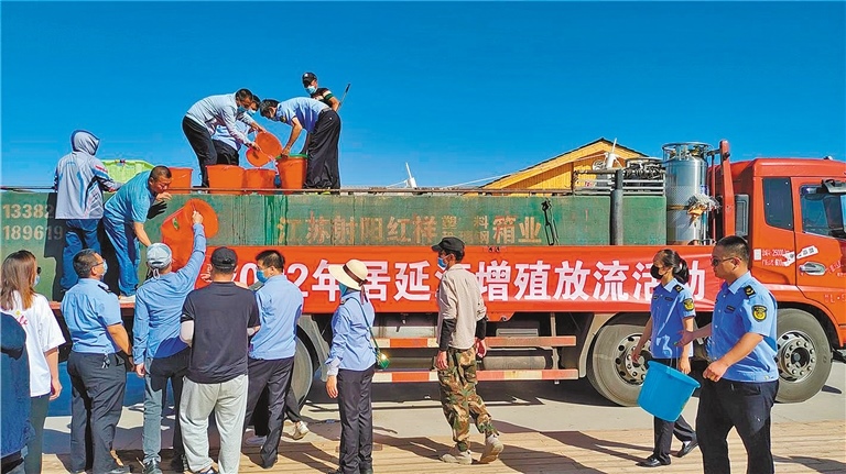 額濟納旗2022年居延海漁業(yè)資源增殖放流活動在風光秀麗、生態(tài)優(yōu)美的居延海畔東歸碼頭啟動,經公證機關公證,同意現場向居延海放流草魚魚苗100萬尾,花白鰱89萬尾。活動現場,前來參與活動的居民拿著水桶,把一條條活蹦亂跳的魚苗放生到居延海中。據了解,該旗從2008年以來累計放流的魚苗數量達到了900余萬尾。