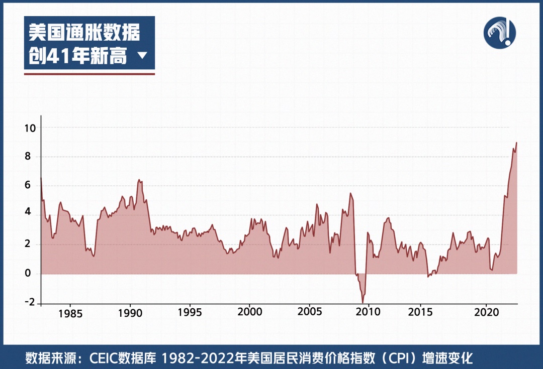 疫情期間,美國不僅以6.5%的經(jīng)濟(jì)損失率(剔除宏觀經(jīng)濟(jì)政策影響之后),位居調(diào)查中涉及的各國前列。更直接的表現(xiàn),就是美國通脹水平創(chuàng)41年新高。