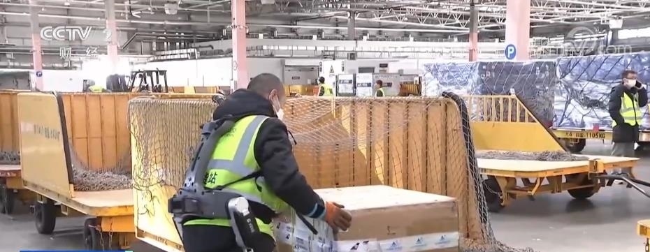 春節(jié)前后貨站的來貨量大增,貨物品種多樣,包裝規(guī)格也不盡相同,很多都需要人工處理。在大興機(jī)場的國內(nèi)貨運站里記者看到,負(fù)責(zé)搬運的工作人員身穿外骨骼機(jī)器人,將很大的貨運箱輕松搬起。工作人員相春江告訴記者,他們貨站前兩年就引進(jìn)了外骨骼機(jī)器人,但是之前貨量小,使用頻率并不高,真正用起來還是在最近。