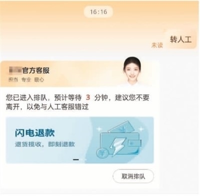 現(xiàn)實中,智能客服的出現(xiàn)的確提供了諸多便利,但當(dāng)智能客服的標(biāo)準(zhǔn)化應(yīng)答無法解決遇到的具體問題時,更多用戶便轉(zhuǎn)向人工客服。然而,人工客服的接通率較低。有網(wǎng)友反映,即便通過排隊接入人工客服,有時為了提交信息退出聊天窗口后,又需重新排隊進入,而此時,人工客服已換人,之前提出的問題也需要重復(fù)表述。