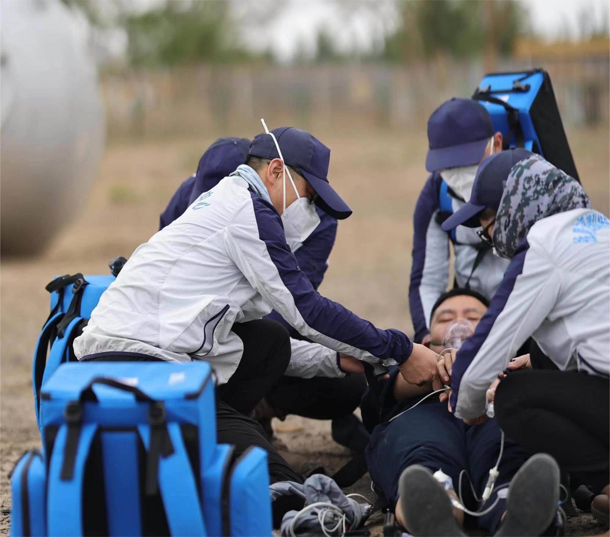 “習(xí)主席指出,打仗在某種意義上講就是打保障。作為醫(yī)療救護(hù)隊(duì),保障航天員的生命安全就是打勝仗,只要存在0.01%的危險(xiǎn),我們就必須做到100%的準(zhǔn)備?!鄙裰圯d人飛行任務(wù)醫(yī)療救護(hù)隊(duì)隊(duì)長(zhǎng)顧建文介紹道。主著陸場(chǎng)涵蓋沙漠、丘陵、湖泊、戈壁等復(fù)雜地形,為順利完成任務(wù),率隊(duì)到達(dá)著陸場(chǎng)的這些天,顧建文一刻也沒(méi)有休息。他帶領(lǐng)醫(yī)療隊(duì)員乘坐直升機(jī)機(jī)動(dòng)1800公里,飛越巴丹吉林沙漠,全面考察地形地貌,細(xì)致完善救治方案,實(shí)地調(diào)研后支醫(yī)院應(yīng)急醫(yī)療準(zhǔn)備情況。