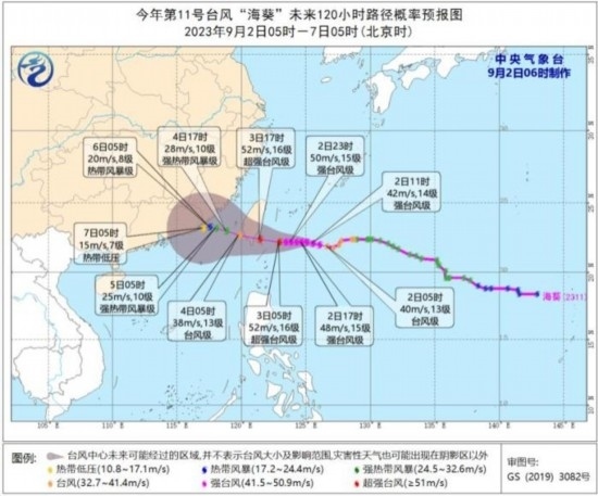 中新網(wǎng)9月2日電 據(jù)中央氣象臺(tái)網(wǎng)站消息,今年第9號(hào)臺(tái)風(fēng)“蘇拉”已于9月2日凌晨由超強(qiáng)臺(tái)風(fēng)級(jí)減弱為強(qiáng)臺(tái)風(fēng)級(jí),并于凌晨3點(diǎn)30分前后在廣東省珠海市南部沿海登陸。2日早晨由強(qiáng)臺(tái)風(fēng)級(jí)減弱為臺(tái)風(fēng)級(jí)。今年第11號(hào)臺(tái)風(fēng)“??睂⒂?日傍晚前后在臺(tái)灣島東南部沿海登陸,然后穿過臺(tái)灣島,逐漸向福建南部到廣東東部沿??拷?/p>