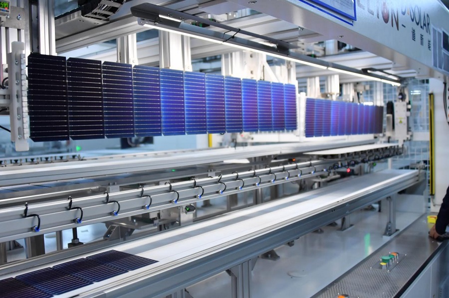 北疆新聞鄂爾多斯11月17日消息(記者 張楊)11月17日,內(nèi)蒙古億利一道新能源有限公司(下稱“億利一道”)首期4GW沙戈荒高效光伏組件生產(chǎn)線在鄂爾多斯高新區(qū)正式投產(chǎn)。組件產(chǎn)品成功下線,標志著億利圍繞沙戈荒新能源布局的氫裝備、光伏組件、支架以及儲能等新能源“四駕馬車”產(chǎn)業(yè)已全部實現(xiàn)投產(chǎn)。