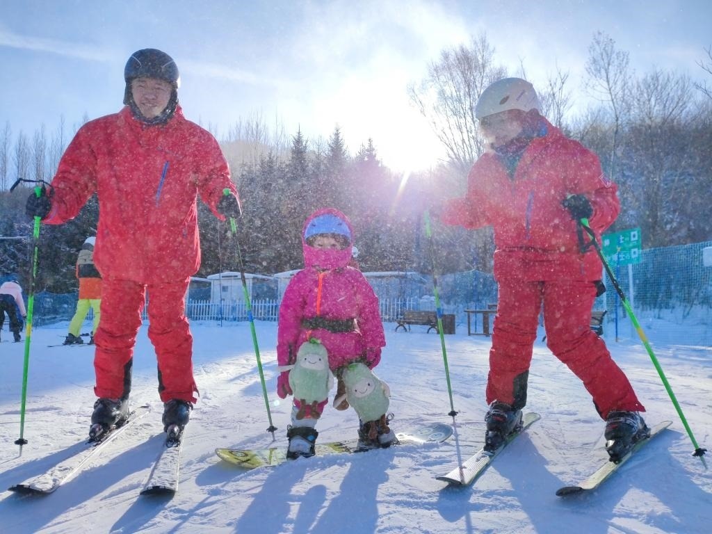 資料圖:小朋友和父母在長(zhǎng)白山滑雪。新華社發(fā)