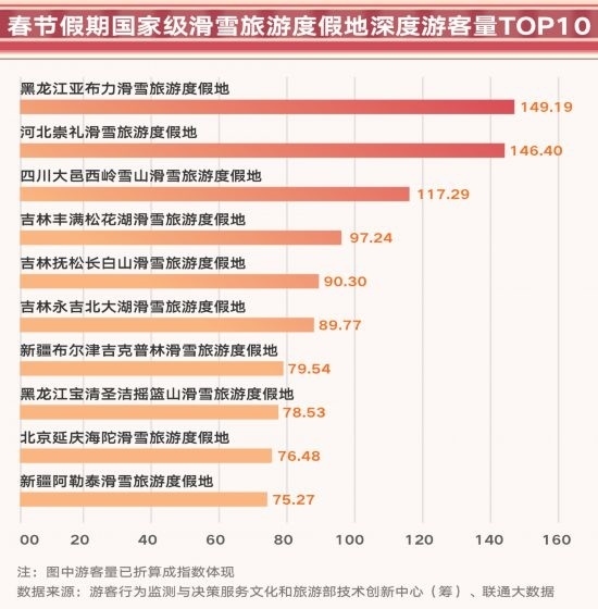 春節(jié)假期,26家國家級(jí)滑雪旅游度假地(核心區(qū))共接待深度游客(在滑雪旅游度假地核心區(qū)停留1小時(shí)以上的游客人數(shù),本部分以下簡稱 “深度游”)82.0萬人。其中深度游前10的滑雪旅游度假地共接待61.5萬人。