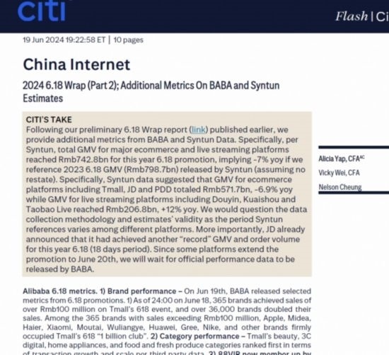 這些數(shù)據(jù)均體現(xiàn)了線上消費(fèi)的結(jié)構(gòu)性增長機(jī)會。花旗認(rèn)為,考慮到今年618很多電商平臺的售賣周期已經(jīng)延長到6月20日,建議市場等待更完整的數(shù)據(jù)之后再做判斷。