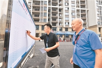 近年來,湖北省襄陽市??悼h持續(xù)改善城市人居環(huán)境、提升城市功能與品位,讓群眾住有所居、安居宜居的夢(mèng)想不斷成為美好現(xiàn)實(shí)。圖為保康縣新型城鎮(zhèn)化項(xiàng)目國投·梅嶺新居小區(qū)開展分房選房工作時(shí),工作人員在填寫房源分配信息。楊 韜攝(人民視覺)
