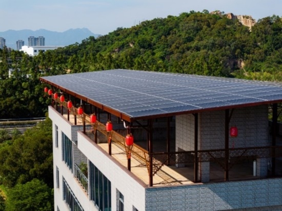 “陽明樓”是興中村通過租賃形式引入的屋頂光伏產(chǎn)品,農(nóng)戶通過出租閑置屋頂給光伏電站項目獲得租金收益,目前該村已有十余戶安裝。為最大化發(fā)電效率,產(chǎn)品采用5°人字坡設計,確保光伏板全年可接收足夠光照,實現(xiàn)收益最大化。按屋頂安裝105塊光伏組件計算,農(nóng)戶在合作期間累計可獲得屋頂綜合收益近8萬元。產(chǎn)品不僅隔熱防雨,其設計結合中式建筑風格,也成為“綠化”鄉(xiāng)村的一道風景。